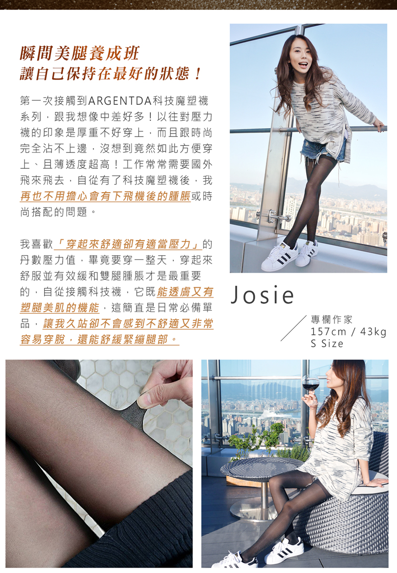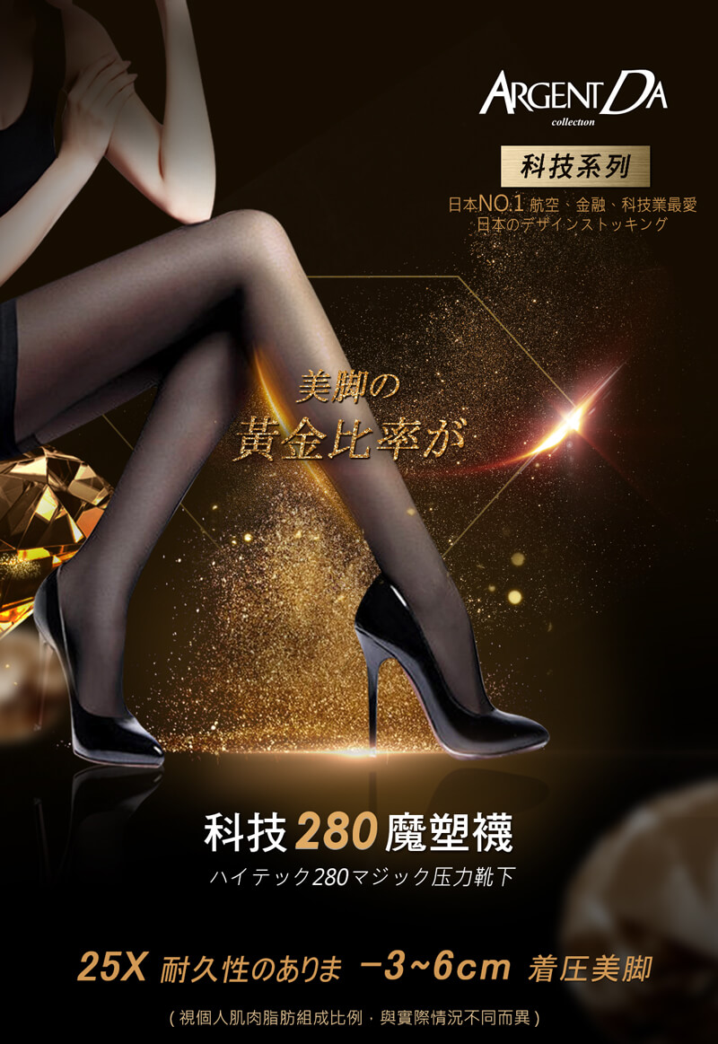 ARGENTDA科技魔塑襪,真的跟一般醜醜的絲襪不同。防止下午腿腫一圈,重點是顏色真的好自然好透明,就像塗上一層保養品一樣,透膚度完全看不出是高單數280丹的褲襪!
