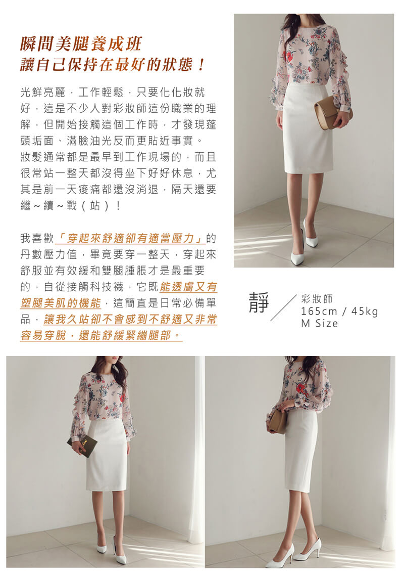 原本澎澎的大腿肉穿上後變得更緊實了,而且腿就像擦了化妝品皮膚變得更粉嫩亮白!穿上去不會有卡襪的問題出現,也沒有假腿的顏色,一整天又能夠幫助下半身強力排水舒緩壓力。